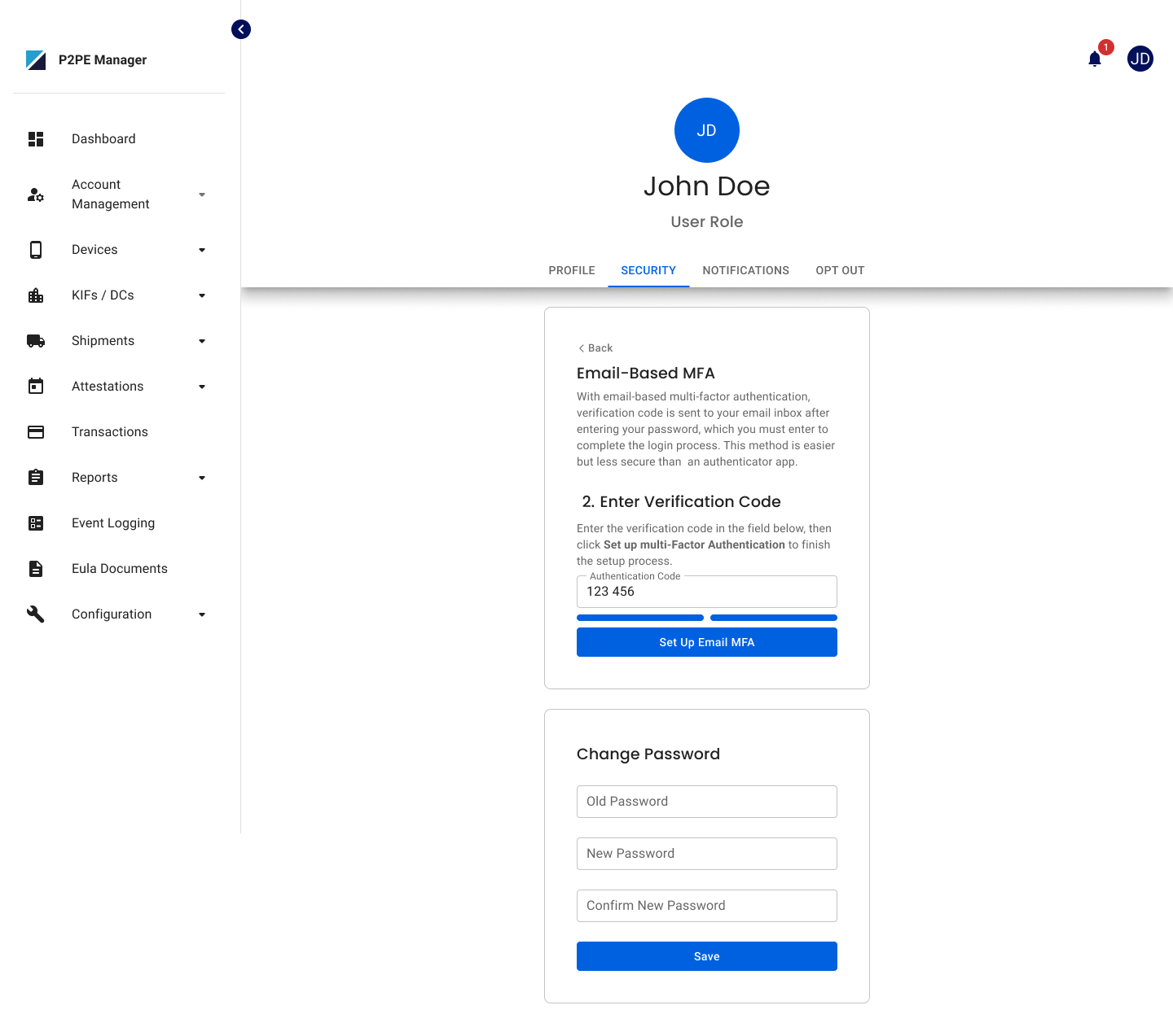This release focuses on improving security, usability, and data clarity across P2PE Manager. It introduces enhancements to multi-factor authentication (MFA), including support for email as a fallback option and a more guided setup experience. Reporting has also been improved with clearer date range displays. Additionally, updates to Site Code validation help prevent conflicts while allowing more flexibility when managing Locations, and small UI improvements have been made to the Device Swap flow to make form completion more intuitive.