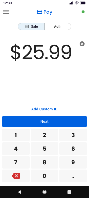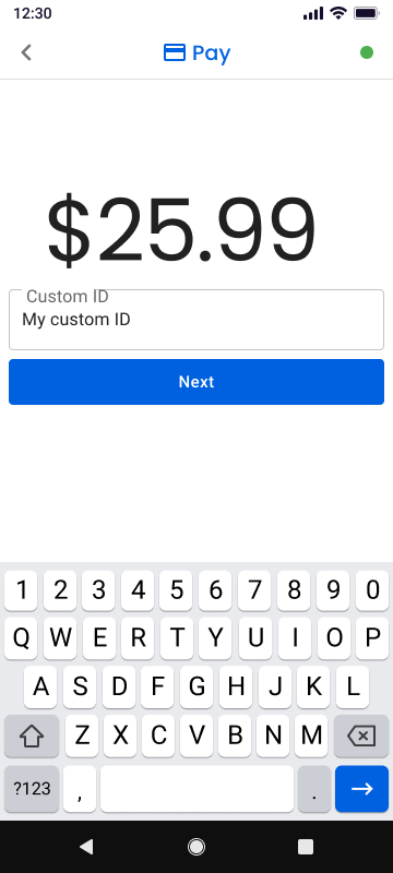 You may tap Custom ID to add an internal reference such as an invoice number or order number. Enter the identifier if needed and continue with the transaction.