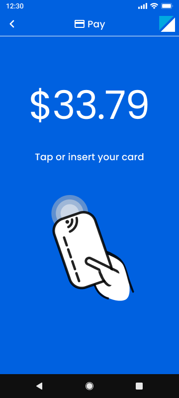 - The screen will prompt the customer to tap or insert their card using the card reader device.