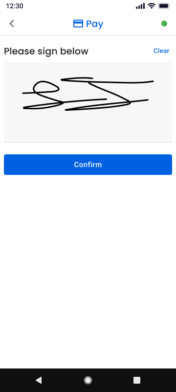 - If required, the customer will be prompted to provide a signature. Tap Confirm after the signature is captured.