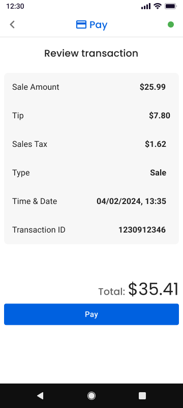 - Review the transaction details and tap Pay.